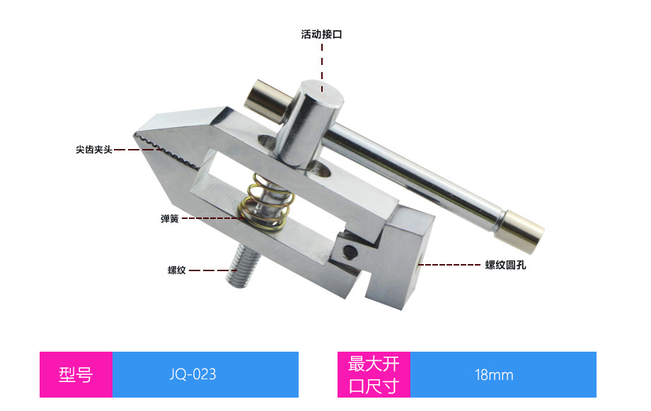 產(chǎn)品型號(hào):JQ-023 品牌:劍 喬 用途:尖齒夾具適用范圍:橡膠、各種線(xiàn)纜、紙、各種電器元件、塑料薄膜等材料的拉力,破壞力測(cè)試。
